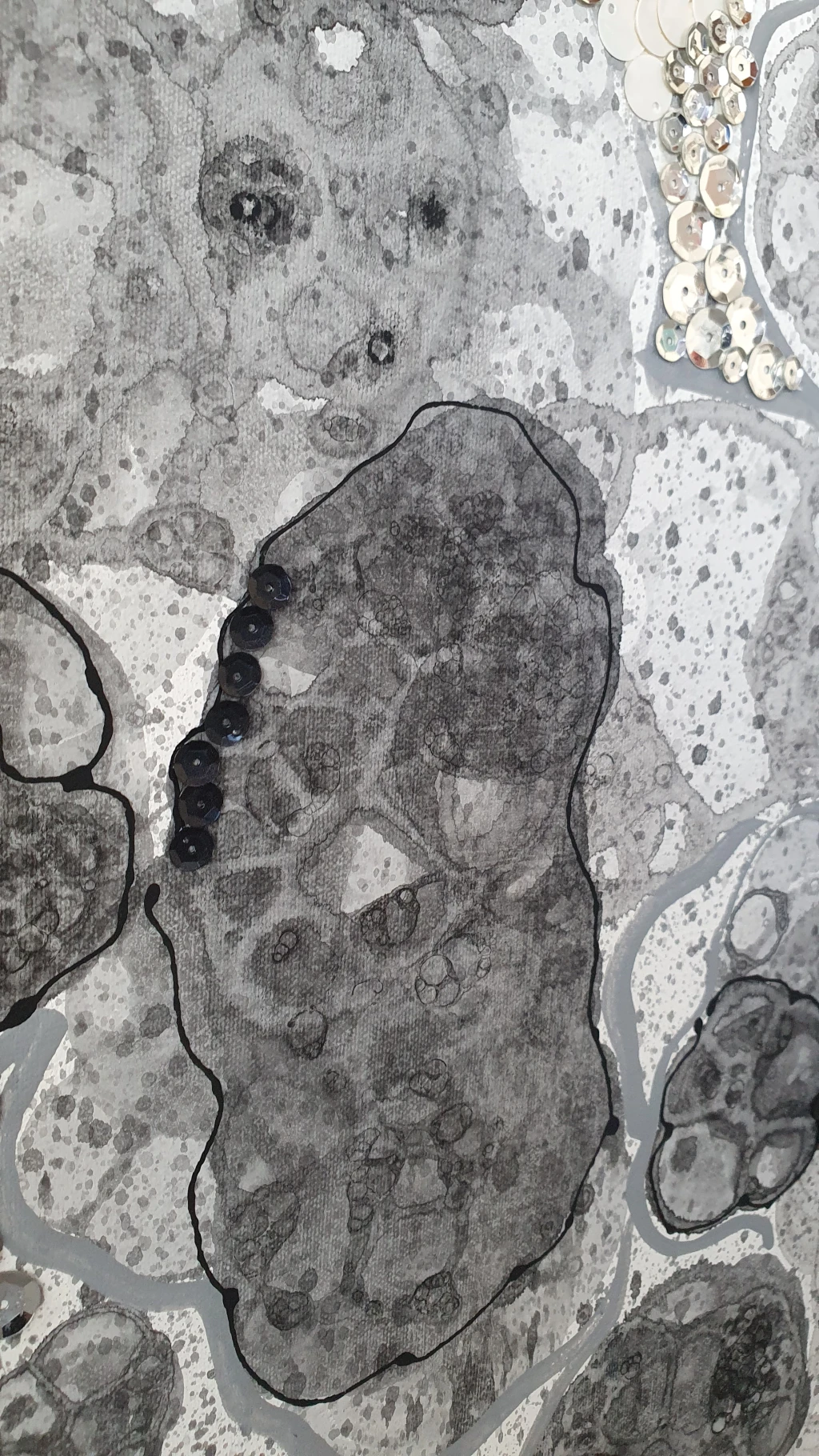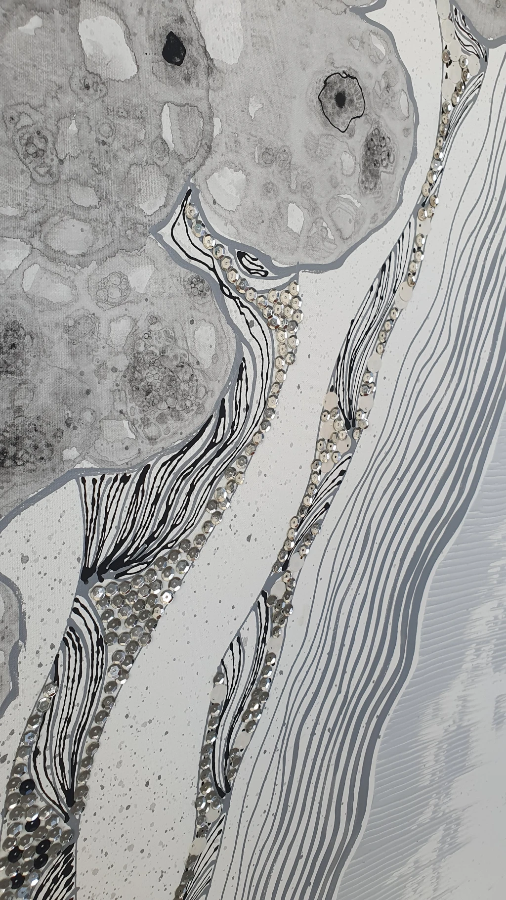 Técnica: acrílico y lentejuelas sobre lienzo
