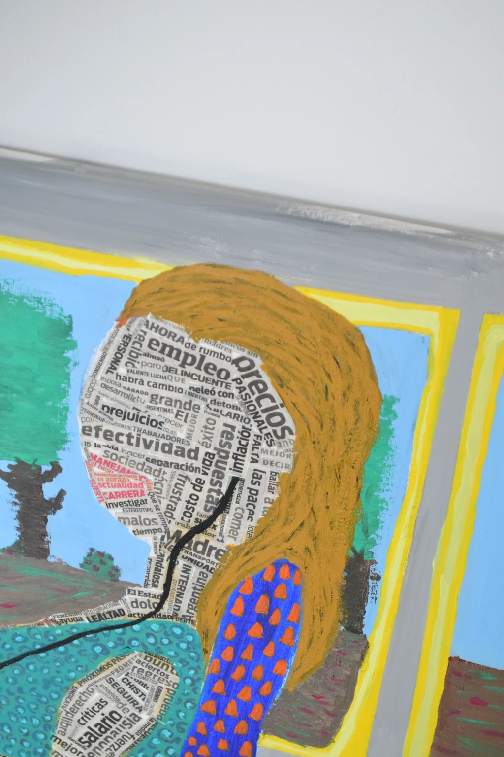 Técnica: acrílico, óleo y recortes de diario sobre lienzo